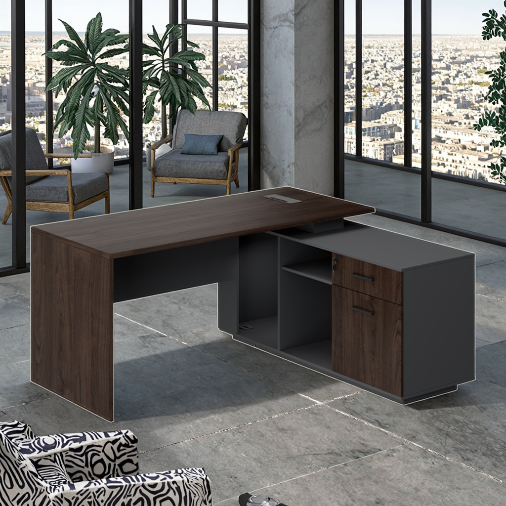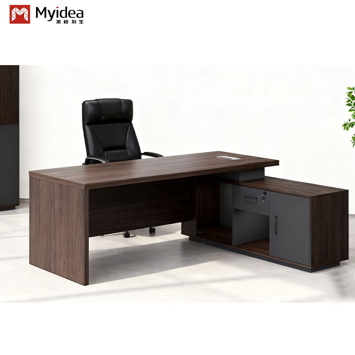 Executive Computer Desk Storage Cabinet Modern Wooden Panel Design Durable Eco-Friendly Construction Assembly Required